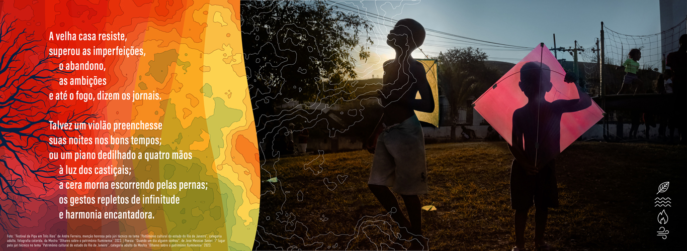 Registros do patrimônio cultural (material, imaterial ou natural) no estado do Rio de Janeiro que tenham sido afetados negativamente pelas mudanças climáticas. São imagens e poesias que revelem contrastes, perdas ou transformações que marcaram esses lugares, práticas e memórias.